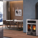 Dual est un thermopoêle bois/granulés au design unique et raffiné, le plus innovant de toute la gamme.Les portes du foyer avec double vitre céramique, les poignées “froides” fixes, les lignes arrondies et douces et les faïences décoré...