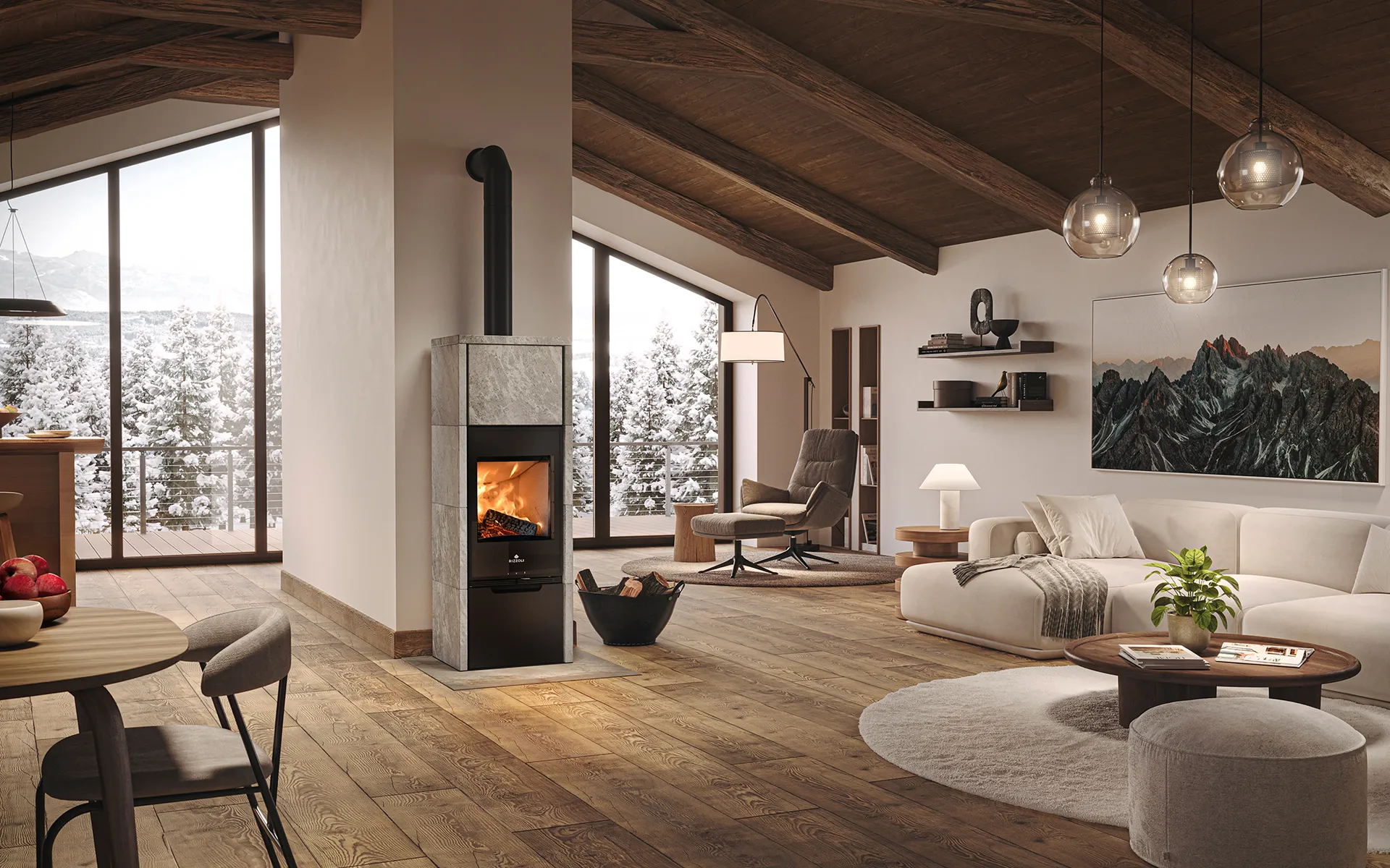 La version Plus adopte le système Durasic® avec 70 kg de matériau réfractaire supplémentaire (en option) qui prolonge considérablement les heures de dégagement de chaleur dans l'environnement. La porte qui ferme le compartiment à bois est disponible en option.